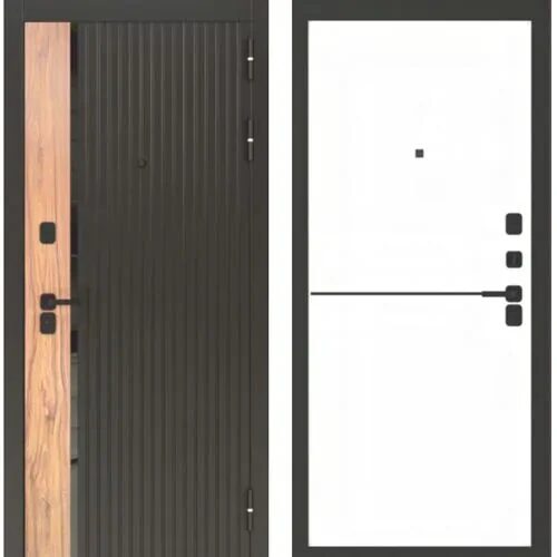Внешняя: МДФ-панель с фрезеровкой Цвет: Черная шагрень + Орех каньон коньяк Внутренняя: фрезерованная МДФ-панель Цвет: Белый матовый, черный молдинг